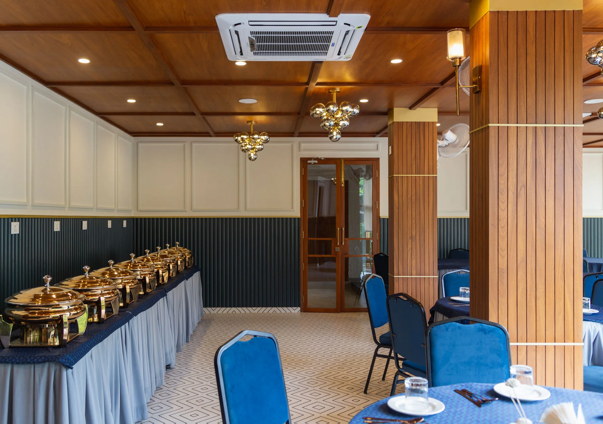 Our design for Sabka Restaurant was focused on bringing to life a luxurious yet culturally rich dining experience. We integrated traditional ethnic elements with modern design features, including wooden interiors, soothing blue and brown tones, and grand chandeliers. The black-and-white checkered flooring adds a touch of vintage flair, while the clear glass and wood doors invite diners into a warm and vibrant atmosphere. Sabka’s heritage, rooted in over 65 years of culinary excellence, was our inspiration in crafting a space that perfectly complements the rich flavors and welcoming service the restaurant is known for.